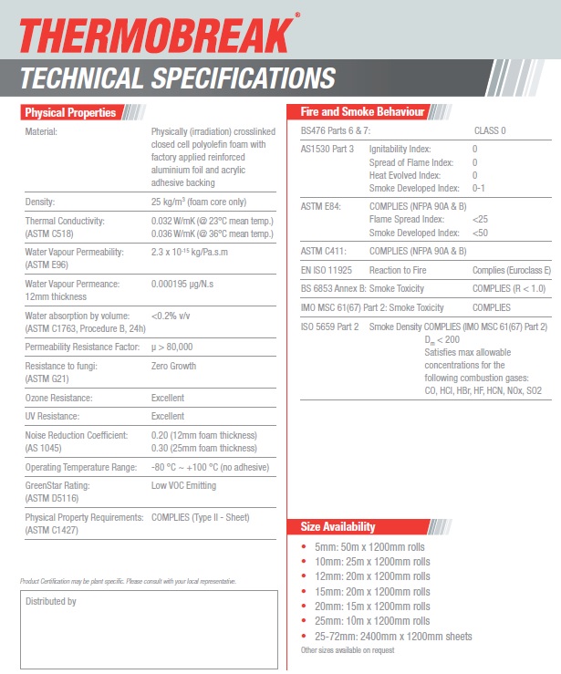 Tested and proven in a variety of climatic conditions and applications, Thermobreak® Thermal & Acoustic Insulation has established an enviable reputation as a high-quality, reliable and durable insulation material that delivers significant energy savings.
